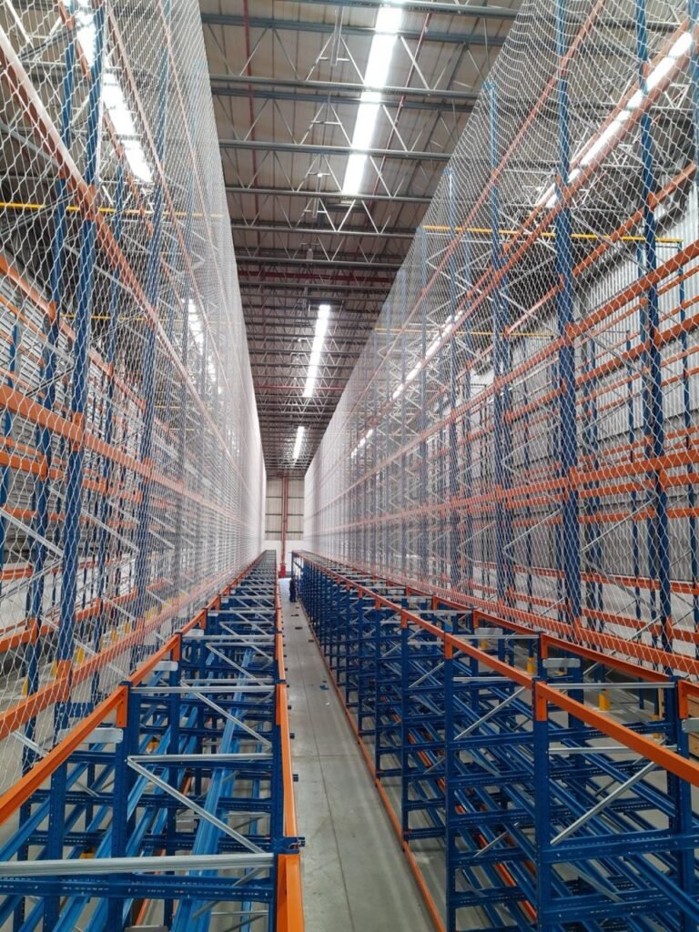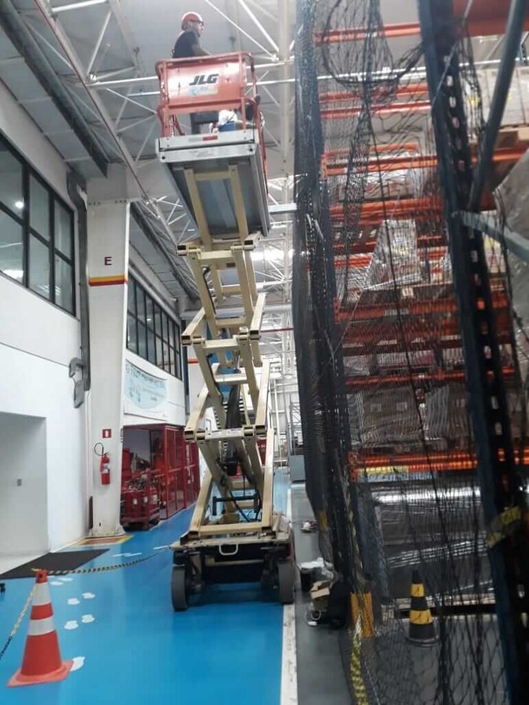 Instalamos mais de 340m² de redes de proteção industrial, incluindo áreas elevadas de armazenamento e corredores de carga, com redes de 530kg/m², ART e execução rápida. O projeto foi finalizado em 48 horas, garantindo segurança sem comprometer o fluxo logístico.