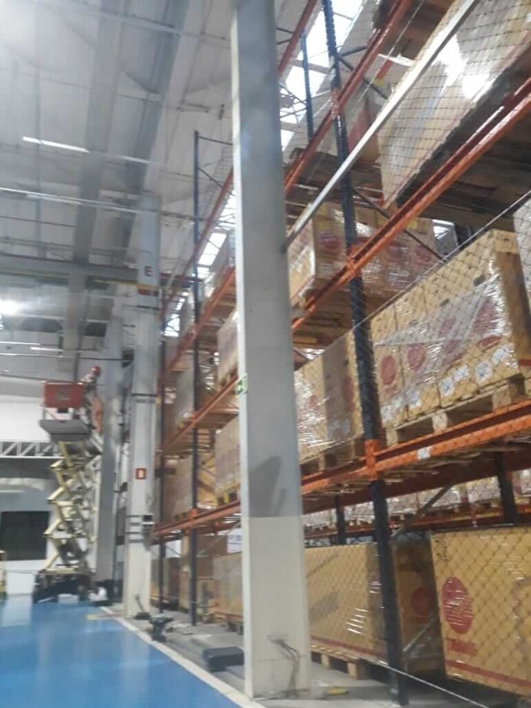 Nutrivita Alimentos – Centro de Distribuição Zona Oeste – Instalação de 280m² de redes de contenção aérea com certificação ART, atendendo normas de segurança alimentar e logística interna. Projeto executado em 3 dias úteis, sem impacto na operação.